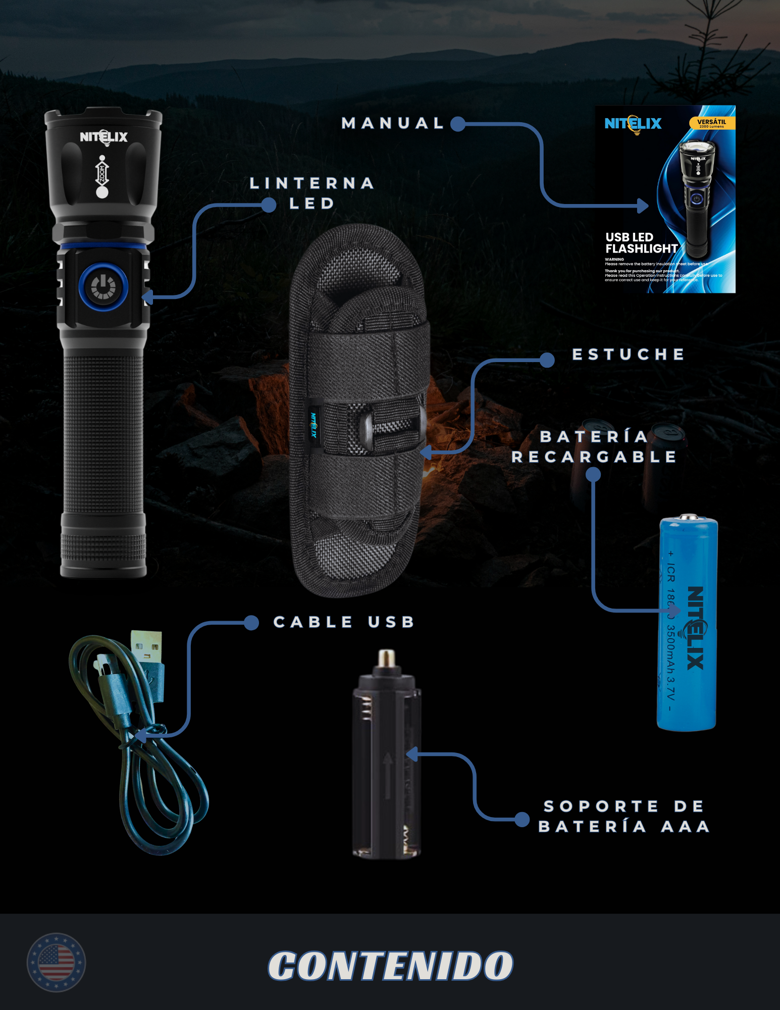 Me encanta que puedo cargar mi teléfono con ella. Es como tener una linterna y un power bank en uno. La calidad es excelente y el precio muy justo.